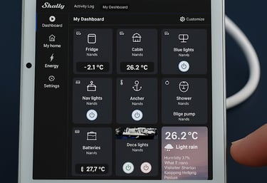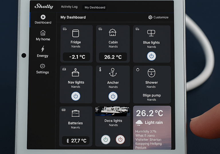 Automated lighting, climate, and ventilation that respond to you — Custom Shelly integrations give your boat the brains to match its beauty
