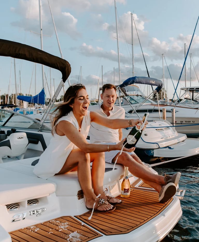 We handle the setup - flags, ribbons, bottle rigging and the perfect spot for the big moment